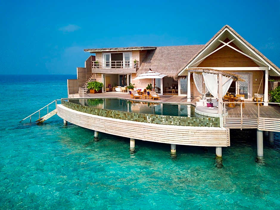 The room includes a package that includes: - Daily breakfast - A dedicated butler (full butler service) - Wifi internet in all villas and public areas - Use of snorkeling equipment during stay - Welcome gift - Bottle of champagne in-villa on arrival - Welcome fruit basket - Use of the private airport lounge on arrival - Gourmet in-villa turndown service - Early check in and late checkout (subject to availability) - A dedicated chef to customize all meals to guest preference - Private outdoor cinema on the deck during the stay - One private half-day excursion of guest’s choice during the stay - CIP welcome services (greet at airplane door and seamless immigration in private lounge at Male International Airport) on arrival and departure