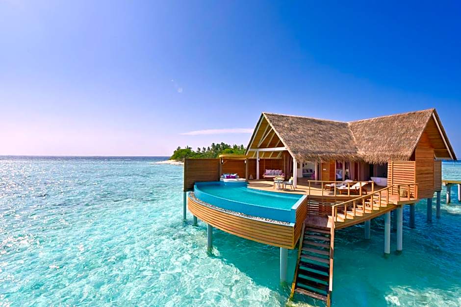 Set directly on the beach, these villas have ocean view and open up to the sundeck, a private pool, Maldivian-style swing chair and sun loungers. The deck has a shower. The air-conditioned bathroom offers both an open air outdoor garden shower and indoor shower as well as a bathtub. Additional benefits include: - Daily breakfast. - 24-hour island host service. - Wifi internet in all villas and public areas. - Use of snorkeling equipment during stay. - Bottle of champagne in-villa on arrival - Welcome fruit basket - Use of the private airport lounge on arrival - Gourmet in-villa turndown service - Early check in and late checkout (subject to availability)