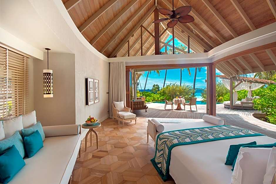 Set directly on the beach, these villas have ocean view and open up to the sundeck, a private pool, Maldivian-style swing chair and sun loungers. The deck has a shower. The air-conditioned bathroom offers both an open air outdoor garden shower and indoor shower as well as a bathtub.